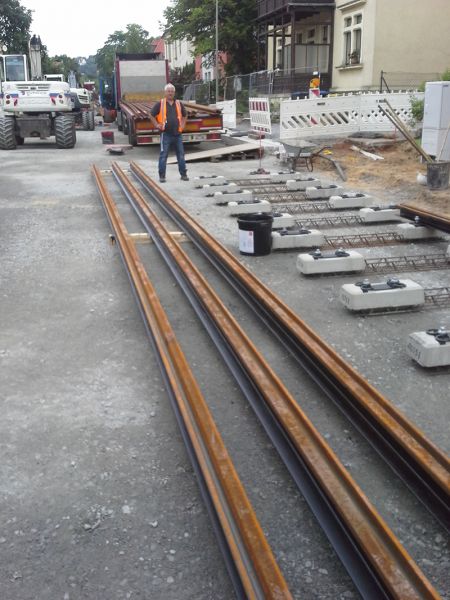 Auf der Tragschicht (300 mm) ohne Bindemittel werden die Zweiblockschwellen TB/ZB-1450 K-W mit/ohne Spindel ausgelegt.