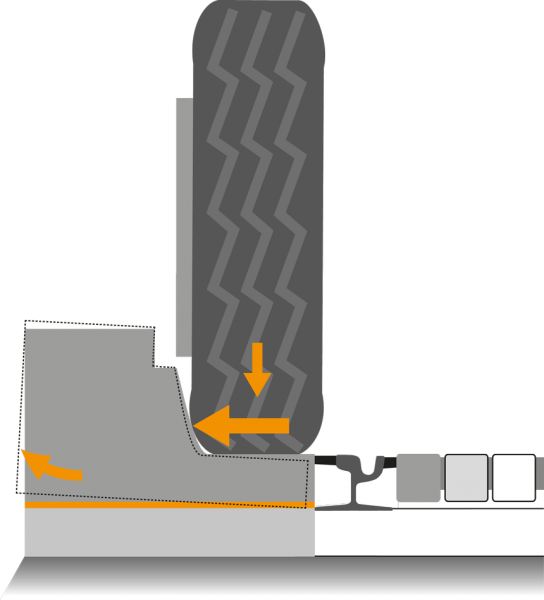Durch starke Anfahrkräfte bei der Führung des Fahrzeuges Bus bei gleichzeitiger Belastung des Steines versagt die "klassische" Bordverlegung.
