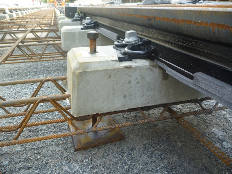 Schienenfußunterlage aus geschlossenzelligem PE-Schaum (geringe Wasseraufnahme wegen Streustromisolation) zum Schutz des Schienenfußes bei der Betonage