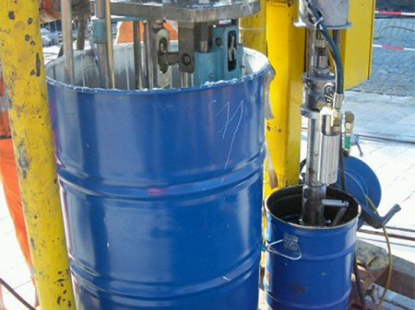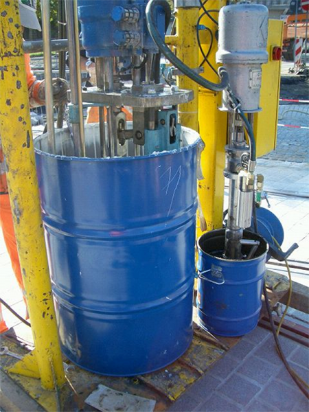 2-Komponenten-Anlage für das Anmischen und Verarbeiten des Fugendichtstoffes (Polysulfid)