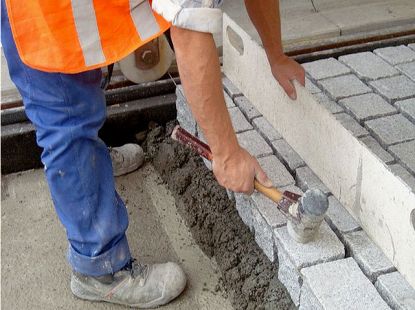3 Einschlagen der Pflastersteine in den Bettungskleber