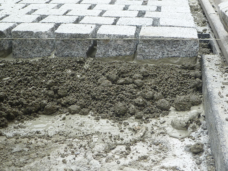 Gepflasterte unverfugte Fläche (Steine sind bis