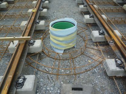 Die Schienenentwässerungskästen sind zu montieren ...